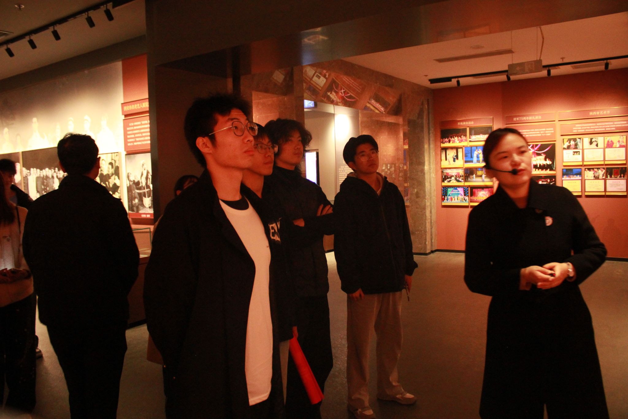 在中国秦腔艺术博物馆中,同学们沿着历史脉络,认真观赏了从明清至近代的秦腔艺术珍品,领略传统戏曲的深厚底蕴。在易俗社百年博物馆中,大家通过沉浸式场景复原与珍贵影像资料,深入了解了秦腔在近现代的传承、创新与传播历程。