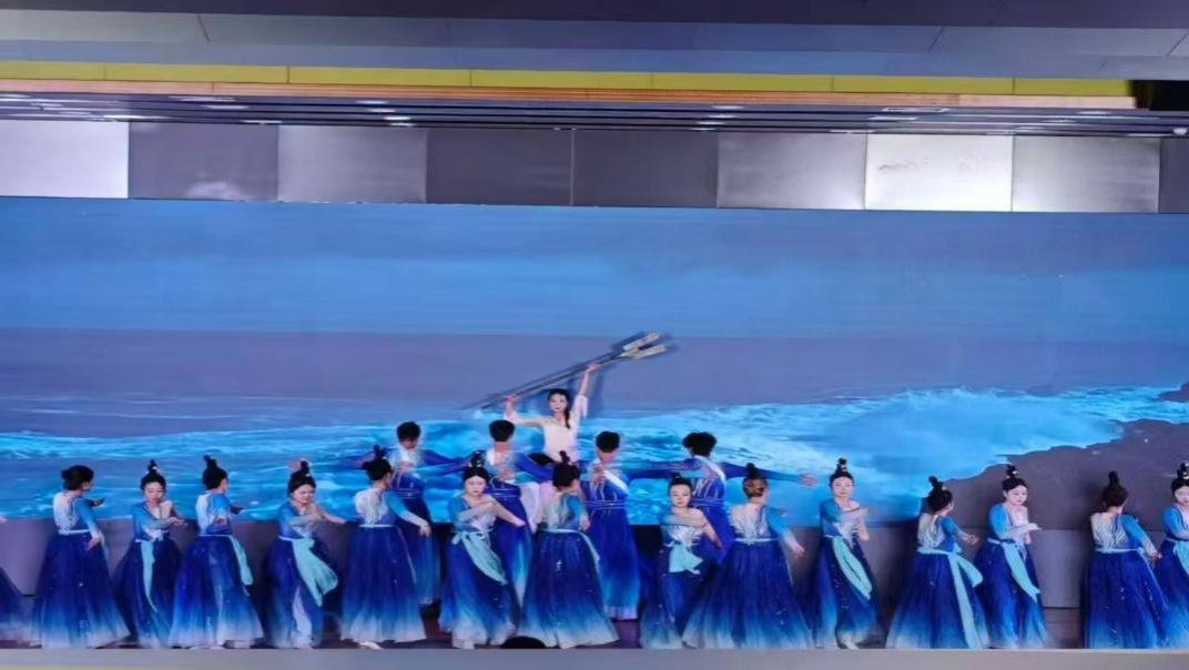 舞蹈《治水长歌》以古代大禹治水的历史故事为创作蓝本,通过刚柔并济的舞姿、富有张力的队形变换,生动再现了水利先贤攻坚克难、造福苍生的崇高精神。舞台上,舞者们身着蓝色舞衣,以极具表现力的肢体语言,展现了治水过程中的艰难险阻与最终成功的恢宏景象,将水利人的智慧担当与艺术表现完美融合,赢得了现场评委和观众的一致好评。