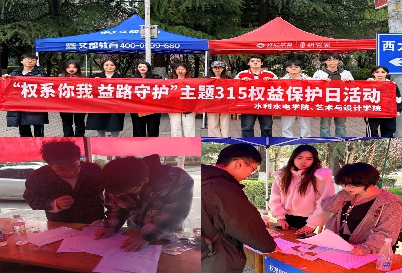 为增强学生消费维权意识,提升权益保护能力,营造安全放心的校园消费环境。3月15日,水利水电学院联合艺术与设计学院在曲江校区主干道组织开展“权系你我,益路守护”“3·15”国际消费者权益日主题活动。