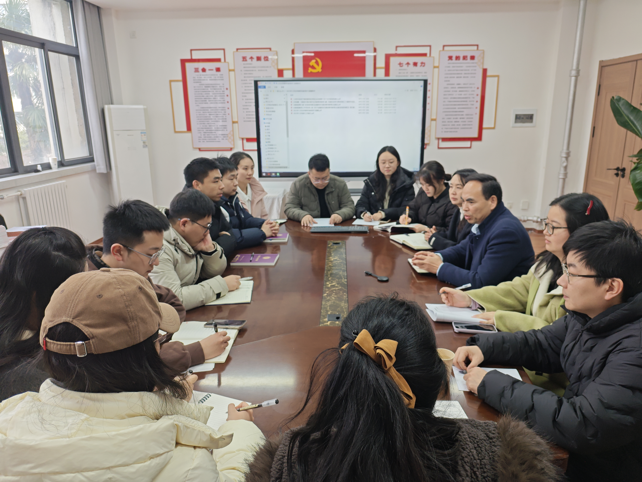 临近寒假,为精准研判期末学生心理动态,统筹部署假期及新学期开学前心理健康保障工作,1月14日中午,水利水电学院在教四楼206会议室组织召开学生心理健康工作专题会商。校心理中心刘洋老师受邀参会指导,学院党委副书记李永阳、全体辅导员参加会议。本次会商聚焦期末收尾、假期关怀及开学预热全周期心理工作,明确关键节点帮扶重点,为学生平稳度过假期、顺利衔接新学期筑牢心理根基。